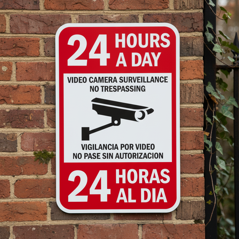 The 24 Hours A Day Video Camera Surveillance No Trespassing is designed to provide exceptional performance and longevity in a variety of environments. this sign component ensures strength and weather resistance, making it ideal for both indoor and outdoor applications. With a size specification of 12X18, it fits standard installation requirements while offering versatility for different mounting setups. Whether you’re updating an existing setup or building new signage, this item ensures a reliable, high-quality finish that represents your brand or message clearly and professionally.