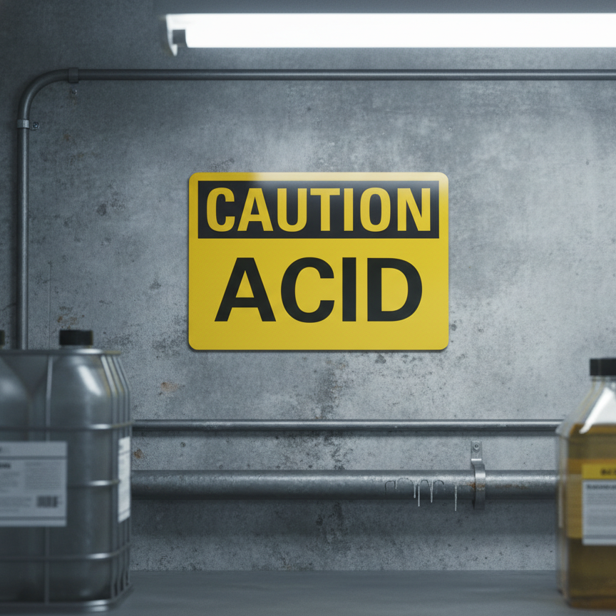 The Caution Acid is designed to provide exceptional performance and longevity in a variety of environments. this sign component ensures strength and weather resistance, making it ideal for both indoor and outdoor applications. With a size specification of 10X7, 14X10, 5X3.5, it fits standard installation requirements while offering versatility for different mounting setups. Whether you’re updating an existing setup or building new signage, this item ensures a reliable, high-quality finish that represents your brand or message clearly and professionally.