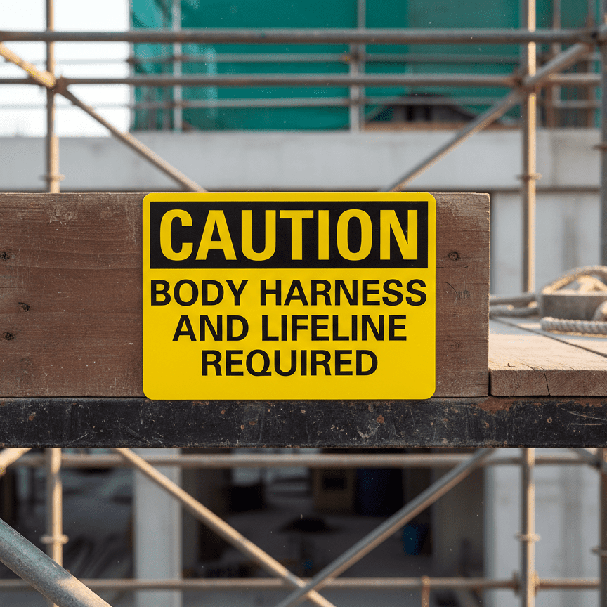Caution Body Harness And Lifeline Required