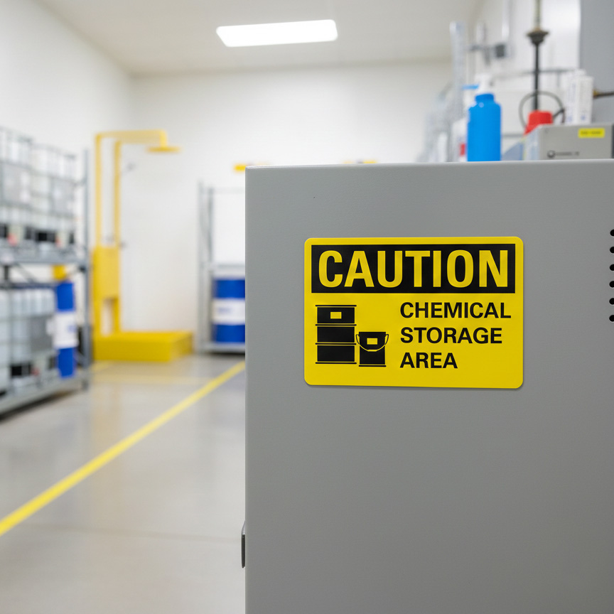 Caution Chemical storage area is built with quality materials for lasting performance.