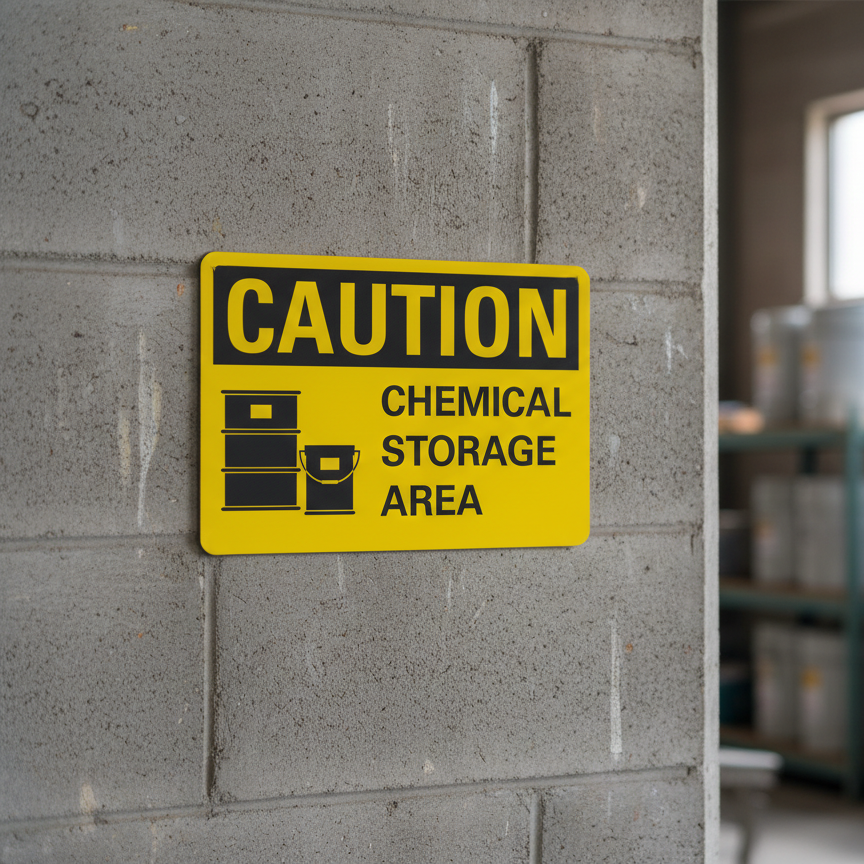 The Caution Chemical storage area is designed to provide exceptional performance and longevity in a variety of environments. this sign component ensures strength and weather resistance, making it ideal for both indoor and outdoor applications. With a size specification of 10X7, 14X10, 5X3.5, 7X5, it fits standard installation requirements while offering versatility for different mounting setups. Whether you’re updating an existing setup or building new signage, this item ensures a reliable, high-quality finish that represents your brand or message clearly and professionally.