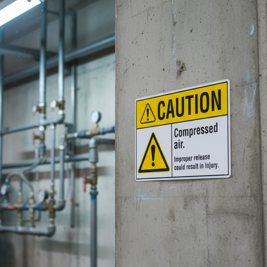 The Caution Compressed air. Improper release could result i is designed to provide exceptional performance and longevity in a variety of environments. this sign component ensures strength and weather resistance, making it ideal for both indoor and outdoor applications. With a size specification of 10X7, 14X10, 5X3.5, 7X5, it fits standard installation requirements while offering versatility for different mounting setups. Whether you’re updating an existing setup or building new signage, this item ensures a reliable, high-quality finish that represents your brand or message clearly and professionally.