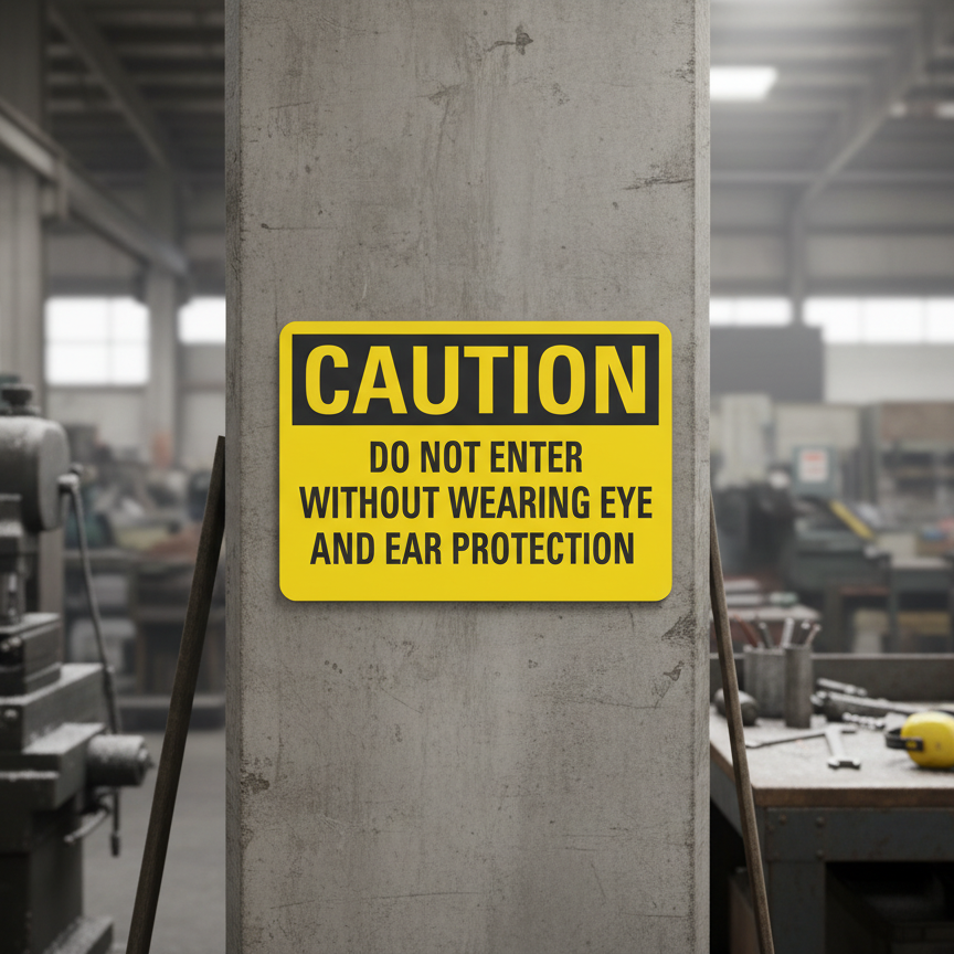 The Caution Do not enter without wearing eye and ear is designed to provide exceptional performance and longevity in a variety of environments. this sign component ensures strength and weather resistance, making it ideal for both indoor and outdoor applications. With a size specification of 10X7, 14X10, 5X3.5, 7X5, it fits standard installation requirements while offering versatility for different mounting setups. Whether you’re updating an existing setup or building new signage, this item ensures a reliable, high-quality finish that represents your brand or message clearly and professionally.