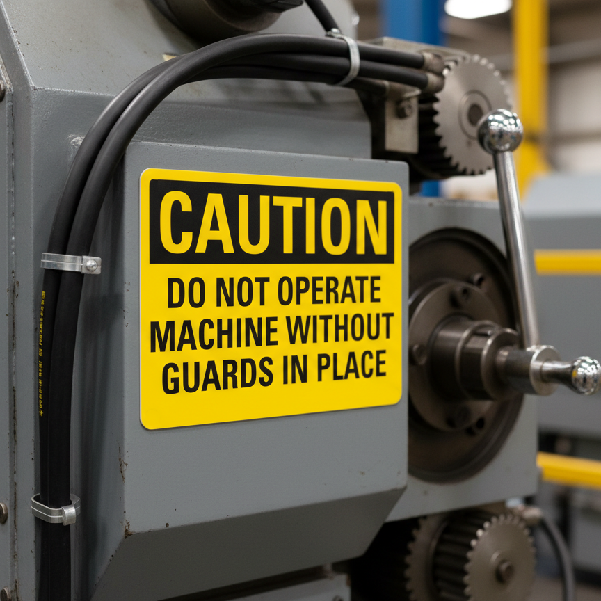 Caution Do Not Operate Machine Without Guards is built with quality materials for lasting performance.