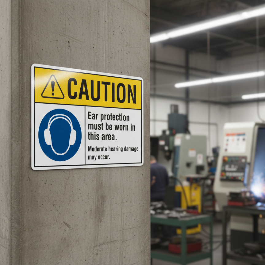 The Caution Ear protection must be worn in this area. Moder is designed to provide exceptional performance and longevity in a variety of environments. this sign component ensures strength and weather resistance, making it ideal for both indoor and outdoor applications. With a size specification of 10X7, 14X10, 5X3.5, 7X5, it fits standard installation requirements while offering versatility for different mounting setups. Whether you’re updating an existing setup or building new signage, this item ensures a reliable, high-quality finish that represents your brand or message clearly and professionally.