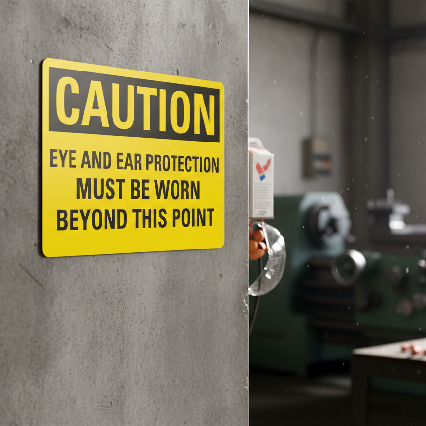 Caution Eye And Ear Protection Must Be Worn is built with quality materials for lasting performance.