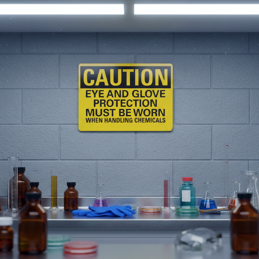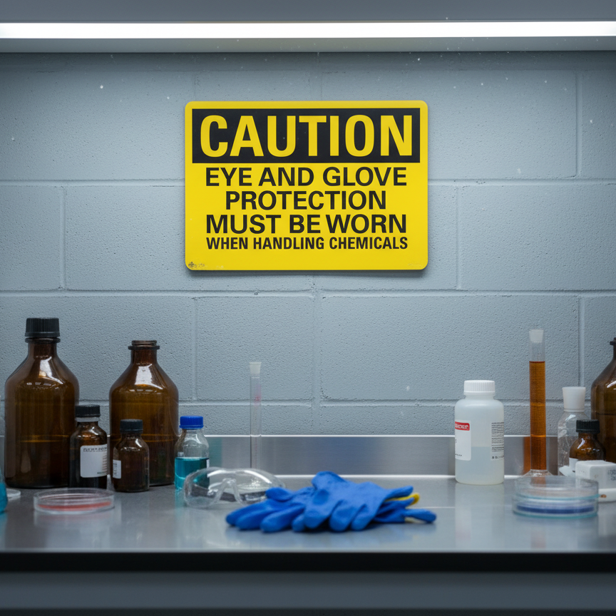 Caution Eye And Glove Protection Must Be Worn is built with quality materials for lasting performance.