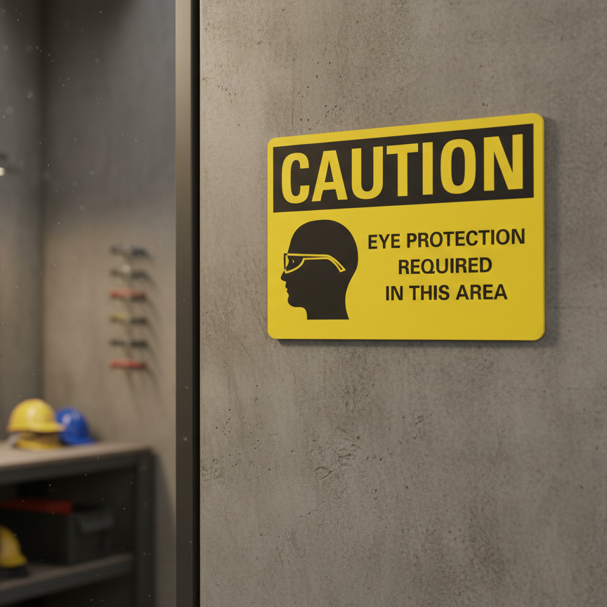The Caution Eye protection required in this area is designed to provide exceptional performance and longevity in a variety of environments. this sign component ensures strength and weather resistance, making it ideal for both indoor and outdoor applications. With a size specification of 10X7, 14X10, 5X3.5, 7X5, it fits standard installation requirements while offering versatility for different mounting setups. Whether you’re updating an existing setup or building new signage, this item ensures a reliable, high-quality finish that represents your brand or message clearly and professionally.