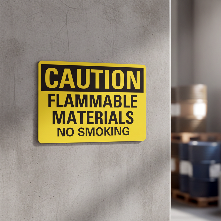 The Caution Flammable Materials No Smoking is designed to provide exceptional performance and longevity in a variety of environments. this sign component ensures strength and weather resistance, making it ideal for both indoor and outdoor applications. With a size specification of 10X7, 14X10, 7X5, it fits standard installation requirements while offering versatility for different mounting setups. Whether you’re updating an existing setup or building new signage, this item ensures a reliable, high-quality finish that represents your brand or message clearly and professionally.