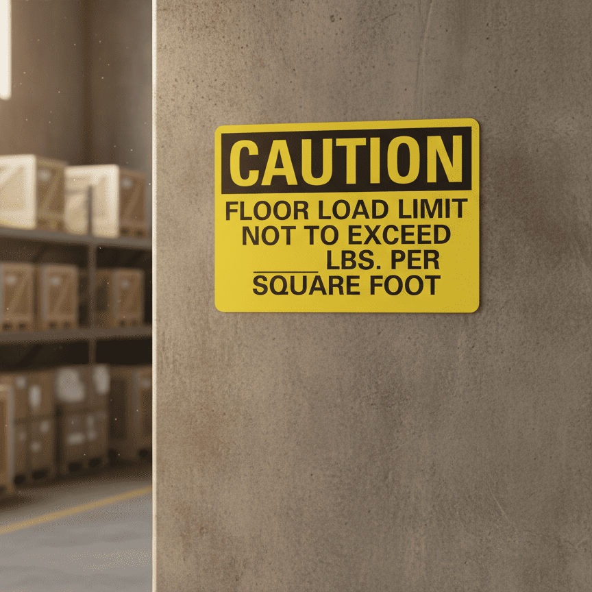 The Caution Floor Load Limit Not To Exceed ___ is designed to provide exceptional performance and longevity in a variety of environments. this sign component ensures strength and weather resistance, making it ideal for both indoor and outdoor applications. With a size specification of 10X7, 14X10, 7X5, it fits standard installation requirements while offering versatility for different mounting setups. Whether you’re updating an existing setup or building new signage, this item ensures a reliable, high-quality finish that represents your brand or message clearly and professionally.