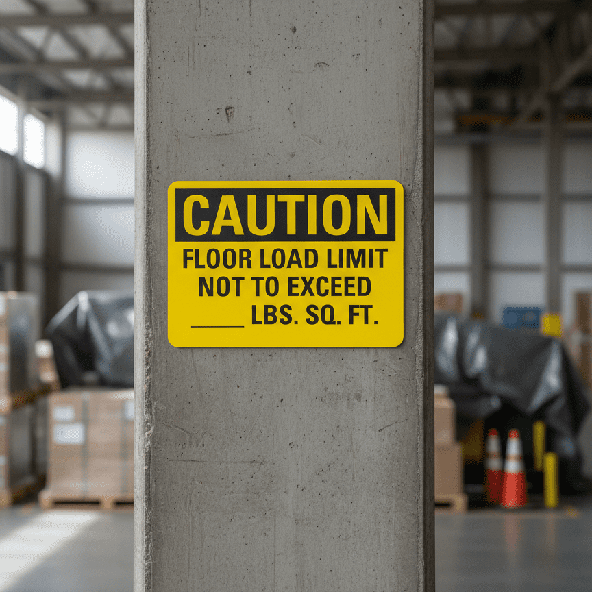 The Caution Floor load limit not to exceed ____ lbs. sq. ft. is designed to provide exceptional performance and longevity in a variety of environments. this sign component ensures strength and weather resistance, making it ideal for both indoor and outdoor applications. With a size specification of 5X3.5, it fits standard installation requirements while offering versatility for different mounting setups. Whether you’re updating an existing setup or building new signage, this item ensures a reliable, high-quality finish that represents your brand or message clearly and professionally.
