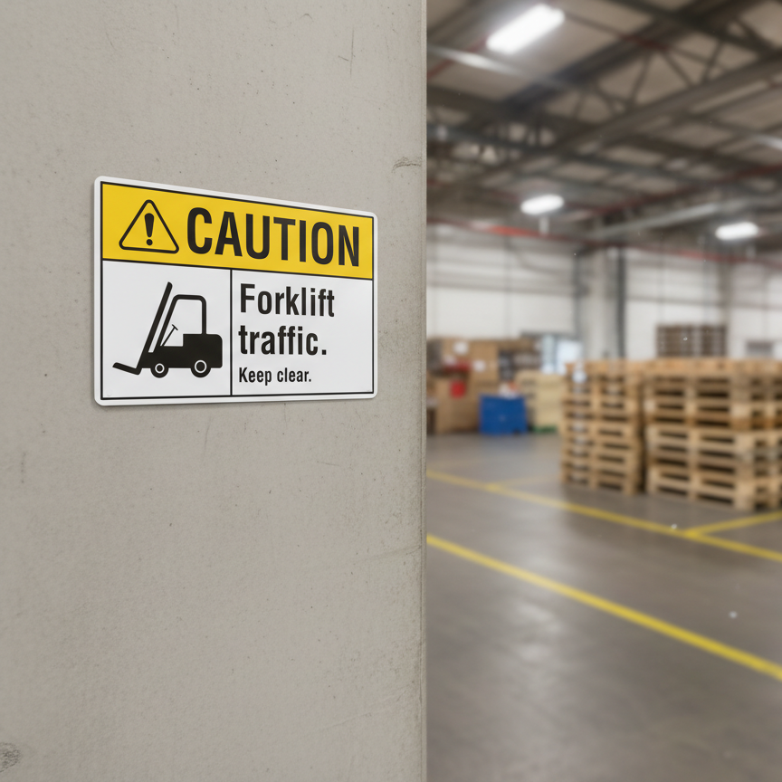 The Caution Forklift traffic. Keep clear. is designed to provide exceptional performance and longevity in a variety of environments. this sign component ensures strength and weather resistance, making it ideal for both indoor and outdoor applications. With a size specification of 10X7, 14X10, 5X3.5, 7X5, it fits standard installation requirements while offering versatility for different mounting setups. Whether you’re updating an existing setup or building new signage, this item ensures a reliable, high-quality finish that represents your brand or message clearly and professionally.