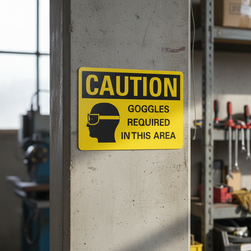 The Caution Goggles required in this area is designed to provide exceptional performance and longevity in a variety of environments. this sign component ensures strength and weather resistance, making it ideal for both indoor and outdoor applications. With a size specification of 10X7, 14X10, 5X3.5, 7X5, it fits standard installation requirements while offering versatility for different mounting setups. Whether you’re updating an existing setup or building new signage, this item ensures a reliable, high-quality finish that represents your brand or message clearly and professionally.