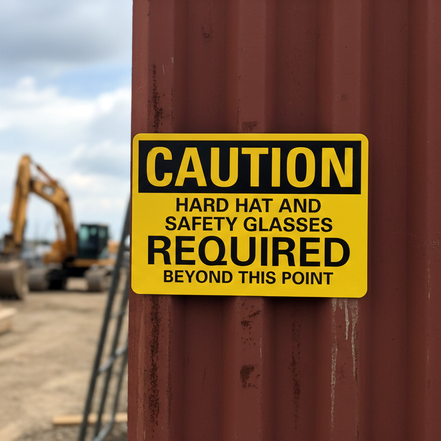 Caution Hard Hat And Safety Glasses Required is built with quality materials for lasting performance.