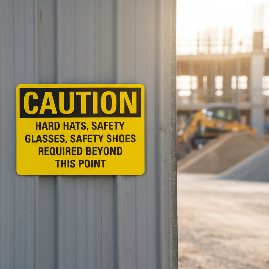Caution Hard Hats, Safety Glasses, Safety Shoes Required is built with quality materials for lasting performance.