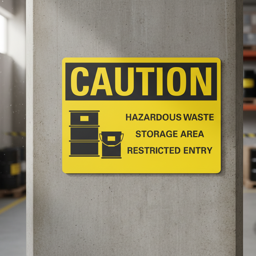 The Caution Hazardous waste storage area restricted entry is designed to provide exceptional performance and longevity in a variety of environments. this sign component ensures strength and weather resistance, making it ideal for both indoor and outdoor applications. With a size specification of 10X7, 14X10, 5X3.5, 7X5, it fits standard installation requirements while offering versatility for different mounting setups. Whether you’re updating an existing setup or building new signage, this item ensures a reliable, high-quality finish that represents your brand or message clearly and professionally.