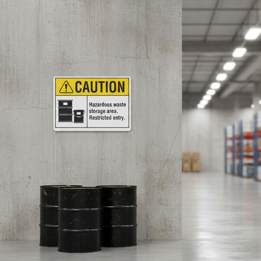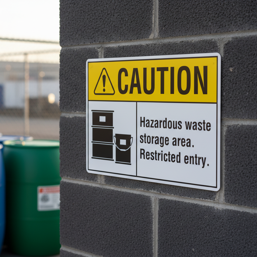 The Caution Hazardous waste storage area restricted entry is designed to provide exceptional performance and longevity in a variety of environments. this sign component ensures strength and weather resistance, making it ideal for both indoor and outdoor applications. With a size specification of 10X7, 14X10, 5X3.5, 7X5, it fits standard installation requirements while offering versatility for different mounting setups. Whether you’re updating an existing setup or building new signage, this item ensures a reliable, high-quality finish that represents your brand or message clearly and professionally.