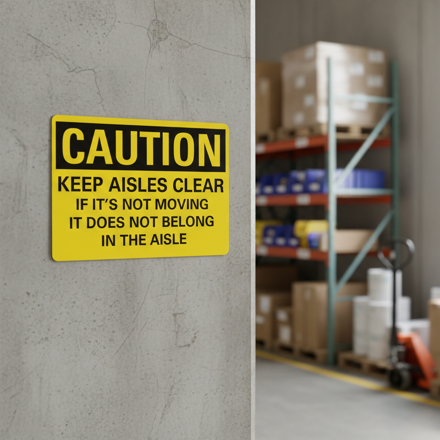 The Caution Keep aisles clear if it’s not moving it does not is designed to provide exceptional performance and longevity in a variety of environments. this sign component ensures strength and weather resistance, making it ideal for both indoor and outdoor applications. With a size specification of 10X7, 14X10, 5X3.5, 7X5, it fits standard installation requirements while offering versatility for different mounting setups. Whether you’re updating an existing setup or building new signage, this item ensures a reliable, high-quality finish that represents your brand or message clearly and professionally.