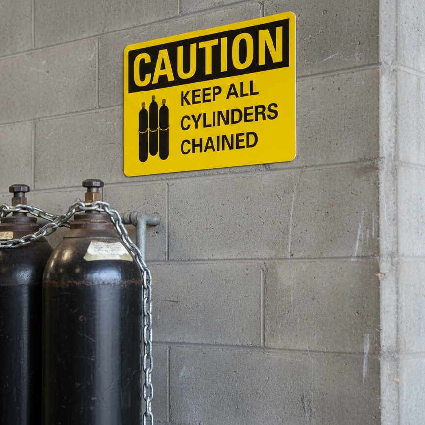 The Caution Keep all cylinders chained is designed to provide exceptional performance and longevity in a variety of environments. this sign component ensures strength and weather resistance, making it ideal for both indoor and outdoor applications. With a size specification of 10X7, 14X10, 5X3.5, 7X5, it fits standard installation requirements while offering versatility for different mounting setups. Whether you’re updating an existing setup or building new signage, this item ensures a reliable, high-quality finish that represents your brand or message clearly and professionally.