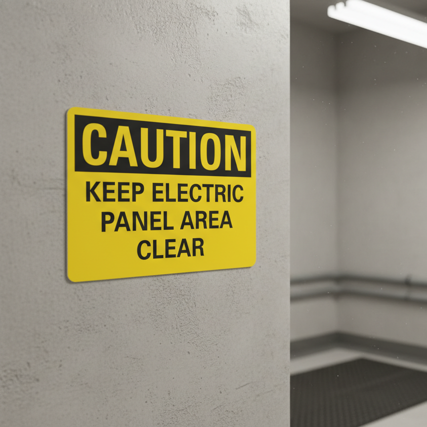The Caution Keep electric panel area clear is designed to provide exceptional performance and longevity in a variety of environments. this sign component ensures strength and weather resistance, making it ideal for both indoor and outdoor applications. With a size specification of 14X10, 5X3.5, it fits standard installation requirements while offering versatility for different mounting setups. Whether you’re updating an existing setup or building new signage, this item ensures a reliable, high-quality finish that represents your brand or message clearly and professionally.