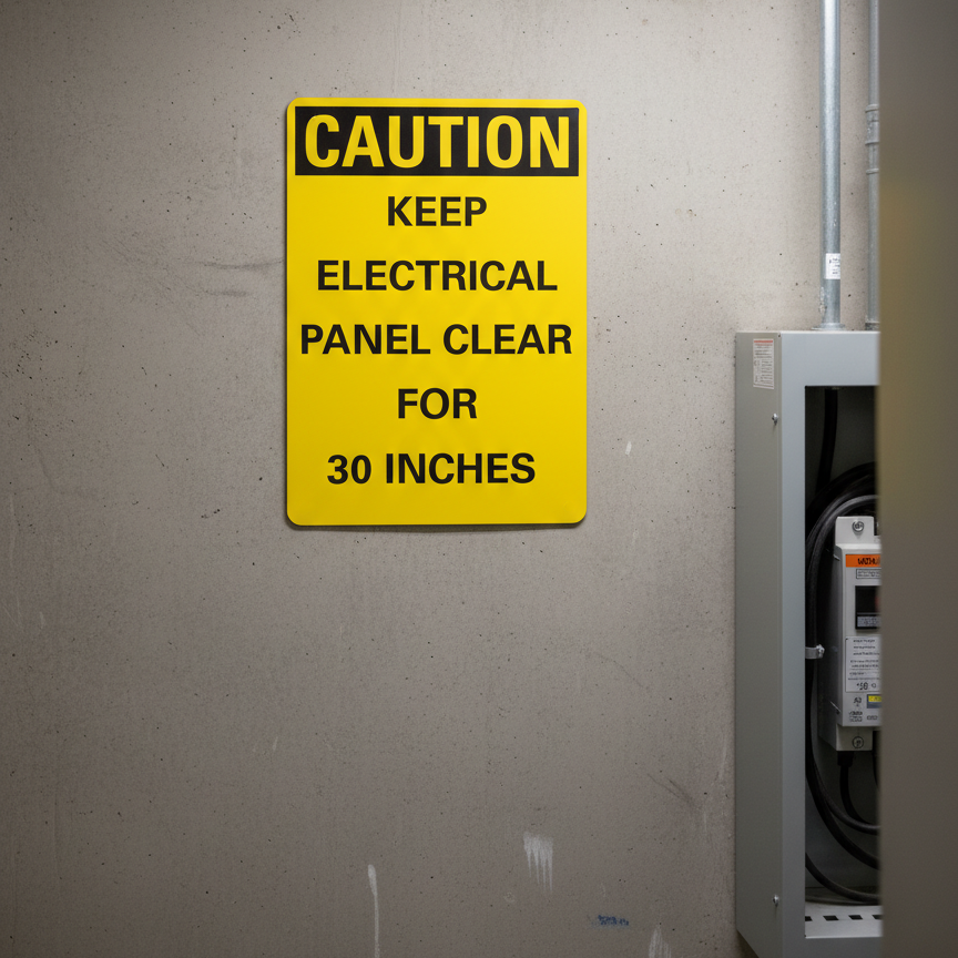 The Caution Keep electrical panel clear for 30 inches is designed to provide exceptional performance and longevity in a variety of environments. this sign component ensures strength and weather resistance, making it ideal for both indoor and outdoor applications. With a size specification of 10X14, 7X10, 10X7, 14X10, 5X3.5, 7X5, it fits standard installation requirements while offering versatility for different mounting setups. Whether you’re updating an existing setup or building new signage, this item ensures a reliable, high-quality finish that represents your brand or message clearly and professionally.