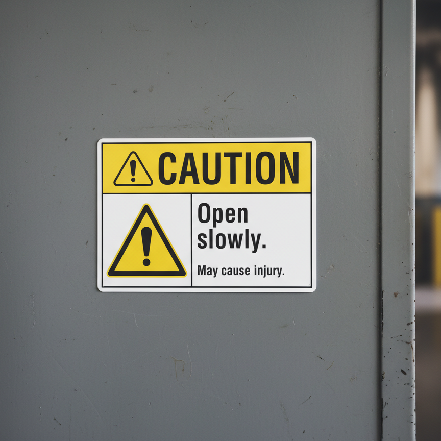 The Caution Open slowly. May cause injury. is designed to provide exceptional performance and longevity in a variety of environments. this sign component ensures strength and weather resistance, making it ideal for both indoor and outdoor applications. With a size specification of 10X7, 14X10, 5X3.5, 7X5, it fits standard installation requirements while offering versatility for different mounting setups. Whether you’re updating an existing setup or building new signage, this item ensures a reliable, high-quality finish that represents your brand or message clearly and professionally.