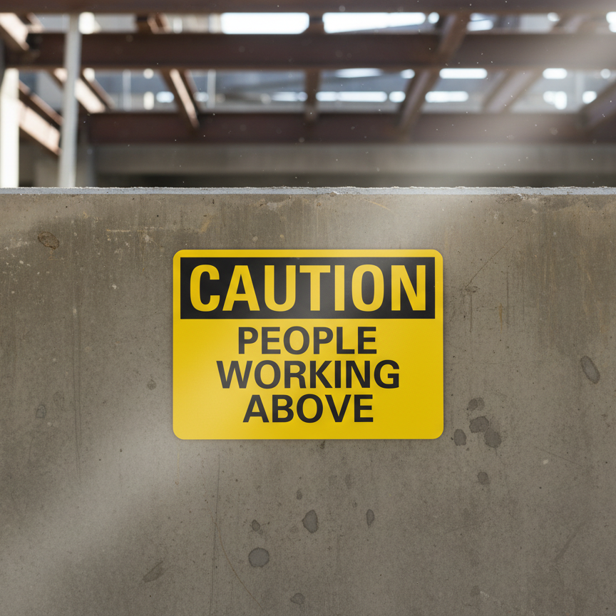 The Caution People Working Above is designed to provide exceptional performance and longevity in a variety of environments. this sign component ensures strength and weather resistance, making it ideal for both indoor and outdoor applications. With a size specification of 10X7, 14X10, 7X5, it fits standard installation requirements while offering versatility for different mounting setups. Whether you’re updating an existing setup or building new signage, this item ensures a reliable, high-quality finish that represents your brand or message clearly and professionally.