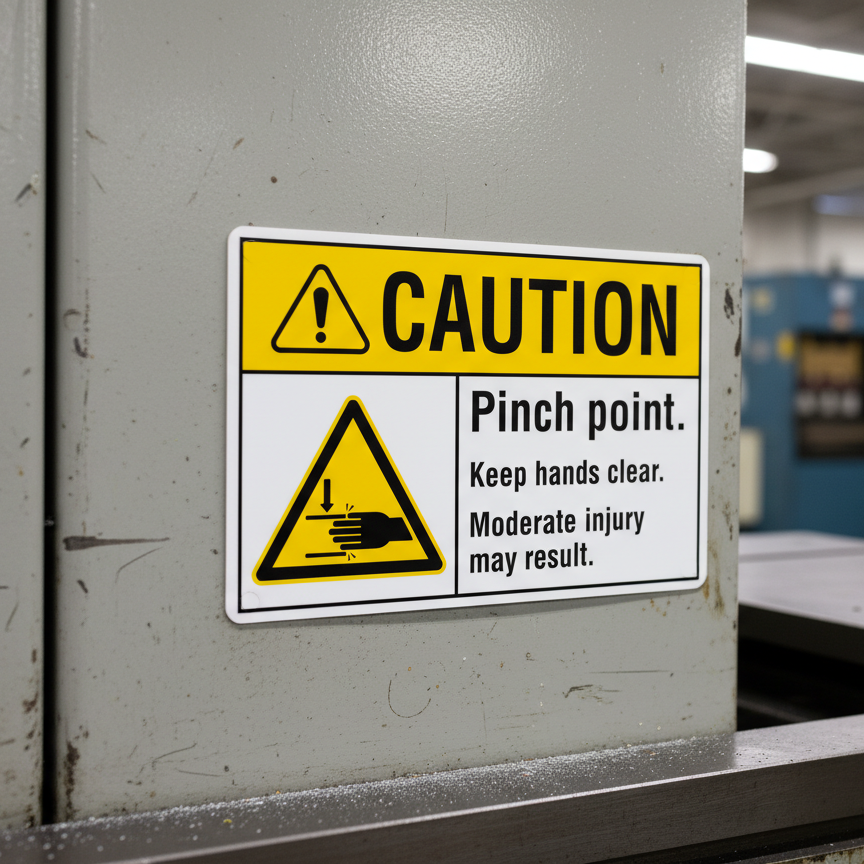 The Caution Pinch point. Keep hands clear. Moderate injury is designed to provide exceptional performance and longevity in a variety of environments. this sign component ensures strength and weather resistance, making it ideal for both indoor and outdoor applications. With a size specification of 10X7, 14X10, 5X3.5, 7X5, it fits standard installation requirements while offering versatility for different mounting setups. Whether you’re updating an existing setup or building new signage, this item ensures a reliable, high-quality finish that represents your brand or message clearly and professionally.