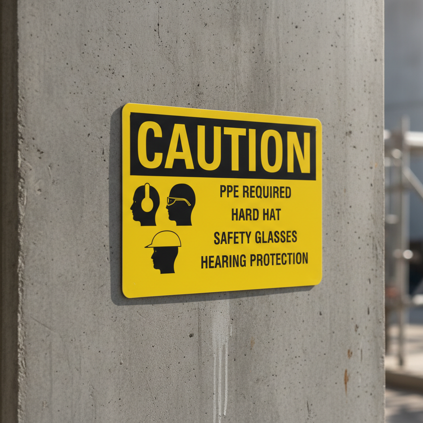 The Caution PPE Required Hard Hat Safety Glasses Hearing is designed to provide exceptional performance and longevity in a variety of environments. this sign component ensures strength and weather resistance, making it ideal for both indoor and outdoor applications. With a size specification of 10X7, 14X10, 5X3.5, 7X5, it fits standard installation requirements while offering versatility for different mounting setups. Whether you’re updating an existing setup or building new signage, this item ensures a reliable, high-quality finish that represents your brand or message clearly and professionally.