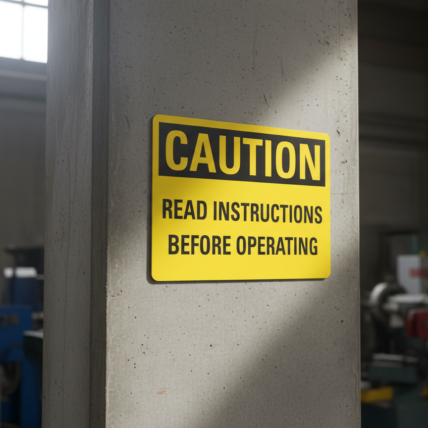 The Caution Read instructions before operating is designed to provide exceptional performance and longevity in a variety of environments. this sign component ensures strength and weather resistance, making it ideal for both indoor and outdoor applications. With a size specification of 10X7, 14X10, 5X3.5, 7X5, it fits standard installation requirements while offering versatility for different mounting setups. Whether you’re updating an existing setup or building new signage, this item ensures a reliable, high-quality finish that represents your brand or message clearly and professionally.