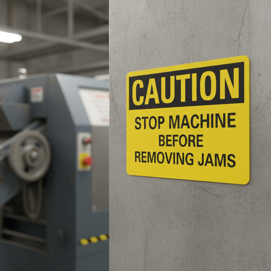 The Caution Stop machine before removing jams is designed to provide exceptional performance and longevity in a variety of environments. this sign component ensures strength and weather resistance, making it ideal for both indoor and outdoor applications. With a size specification of 10X7, 14X10, 5X3.5, 7X5, it fits standard installation requirements while offering versatility for different mounting setups. Whether you’re updating an existing setup or building new signage, this item ensures a reliable, high-quality finish that represents your brand or message clearly and professionally.