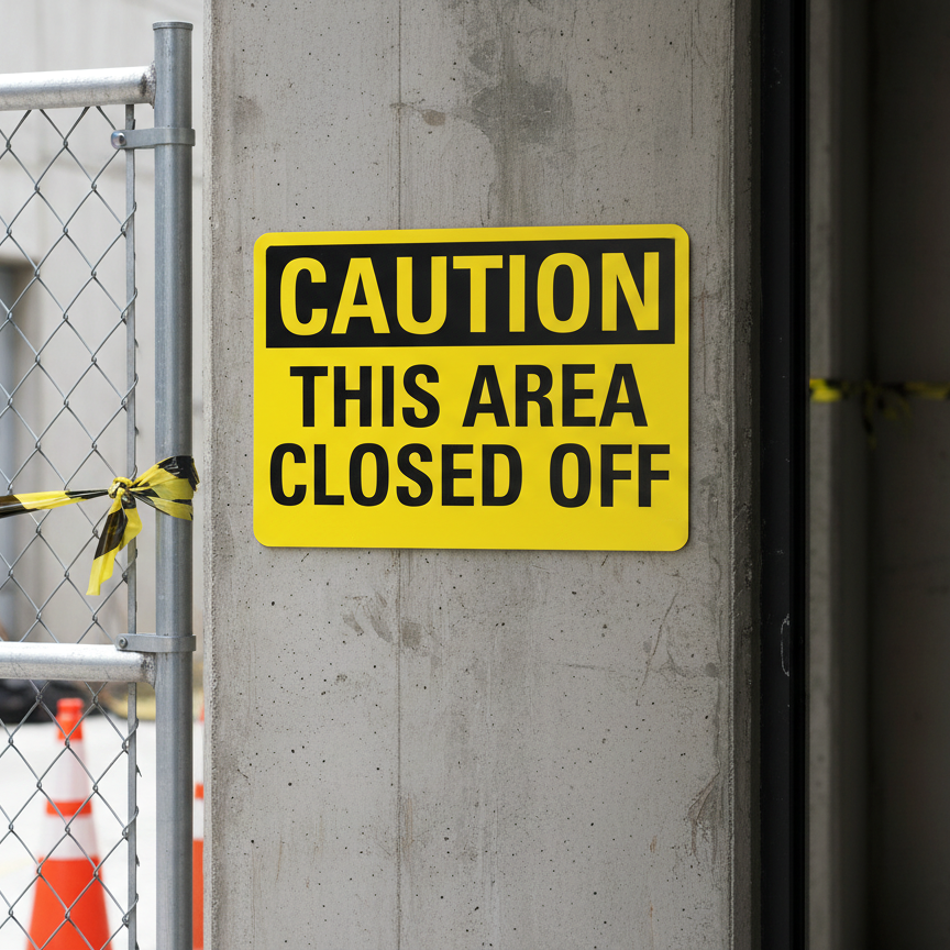 The Caution This Area Closed Off is designed to provide exceptional performance and longevity in a variety of environments. this sign component ensures strength and weather resistance, making it ideal for both indoor and outdoor applications. With a size specification of 10X7, 14X10, it fits standard installation requirements while offering versatility for different mounting setups. Whether you’re updating an existing setup or building new signage, this item ensures a reliable, high-quality finish that represents your brand or message clearly and professionally.
