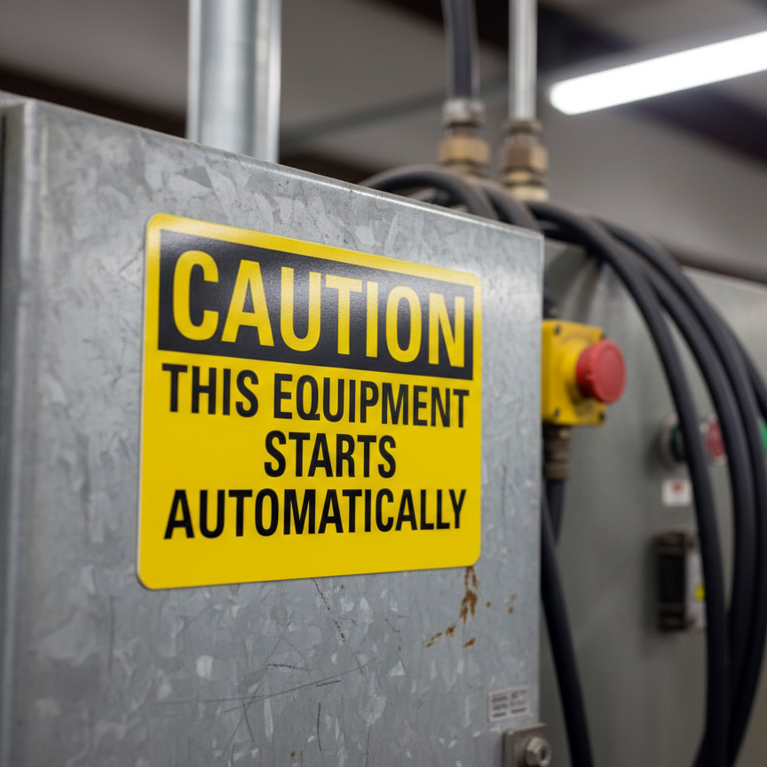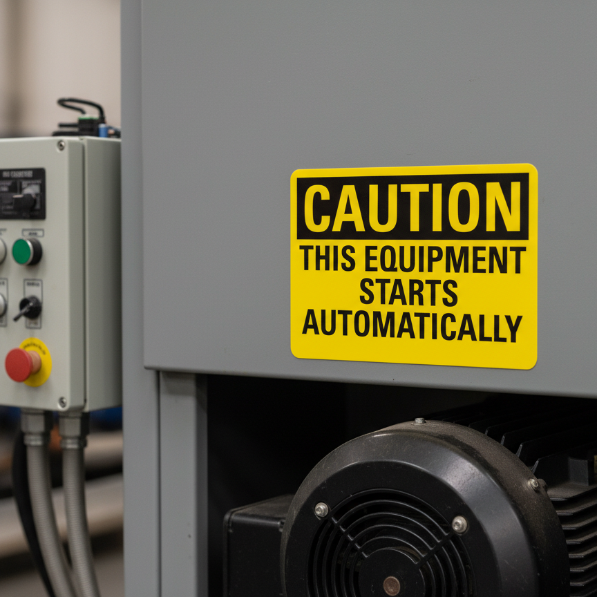 The Caution This Equipment Starts Automatically is designed to provide exceptional performance and longevity in a variety of environments. this sign component ensures strength and weather resistance, making it ideal for both indoor and outdoor applications. With a size specification of 10X7, 14X10, 7X5, it fits standard installation requirements while offering versatility for different mounting setups. Whether you’re updating an existing setup or building new signage, this item ensures a reliable, high-quality finish that represents your brand or message clearly and professionally.