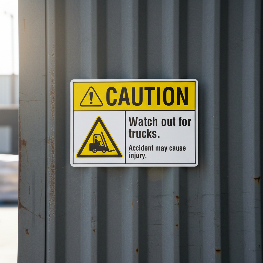 The Caution Watch out for trucks. Accident may cause injury is designed to provide exceptional performance and longevity in a variety of environments. this sign component ensures strength and weather resistance, making it ideal for both indoor and outdoor applications. With a size specification of 10X7, 14X10, 5X3.5, 7X5, it fits standard installation requirements while offering versatility for different mounting setups. Whether you’re updating an existing setup or building new signage, this item ensures a reliable, high-quality finish that represents your brand or message clearly and professionally.
