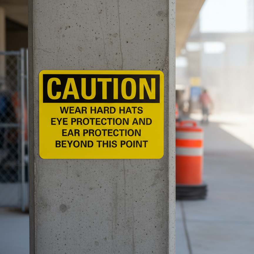The Caution Wear hard hats eye protection and ear protection is designed to provide exceptional performance and longevity in a variety of environments. this sign component ensures strength and weather resistance, making it ideal for both indoor and outdoor applications. With a size specification of 10X7, 14X10, 5X3.5, 7X5, it fits standard installation requirements while offering versatility for different mounting setups. Whether you’re updating an existing setup or building new signage, this item ensures a reliable, high-quality finish that represents your brand or message clearly and professionally.