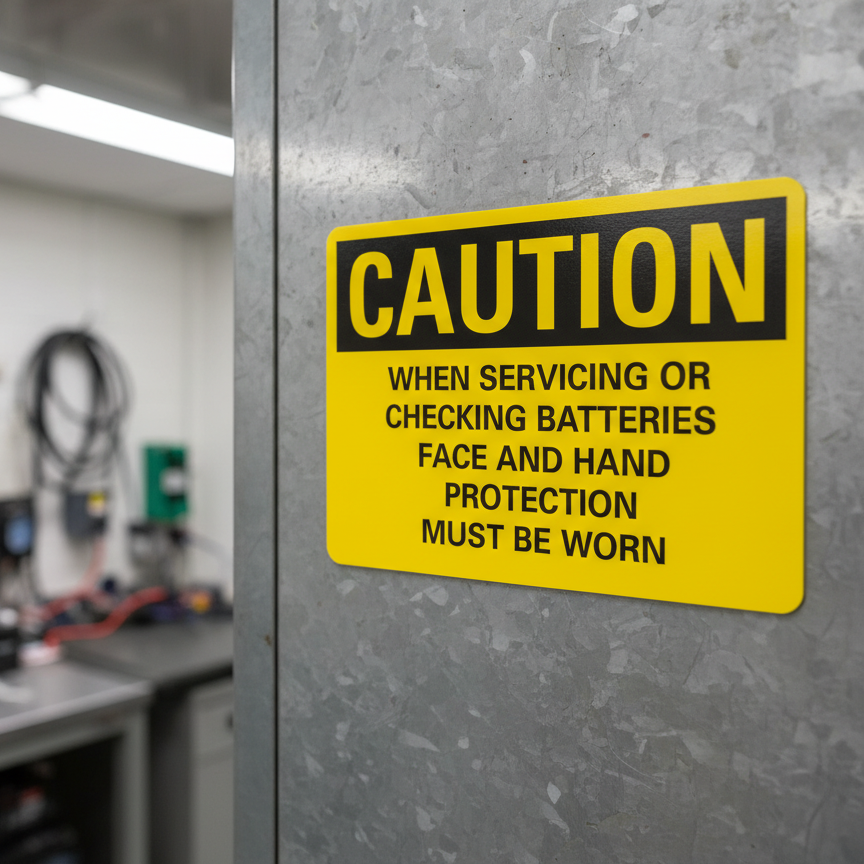 The Caution When servicing or checking batteries face and is designed to provide exceptional performance and longevity in a variety of environments. this sign component ensures strength and weather resistance, making it ideal for both indoor and outdoor applications. With a size specification of 10X7, 14X10, 5X3.5, 7X5, it fits standard installation requirements while offering versatility for different mounting setups. Whether you’re updating an existing setup or building new signage, this item ensures a reliable, high-quality finish that represents your brand or message clearly and professionally.