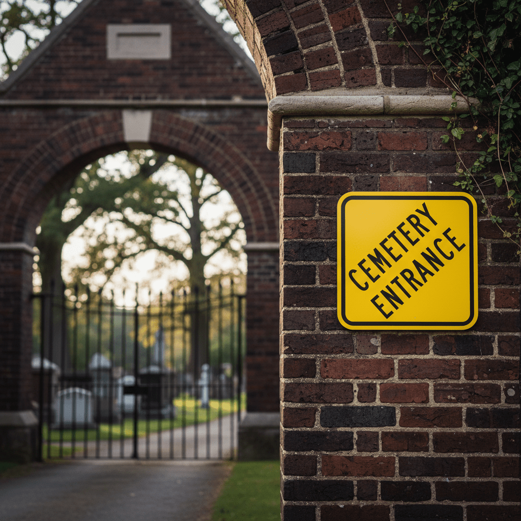 The Cemetery Entrance is designed to provide exceptional performance and longevity in a variety of environments. this sign component ensures strength and weather resistance, making it ideal for both indoor and outdoor applications. With a size specification of 12X12, it fits standard installation requirements while offering versatility for different mounting setups. Whether you’re updating an existing setup or building new signage, this item ensures a reliable, high-quality finish that represents your brand or message clearly and professionally.