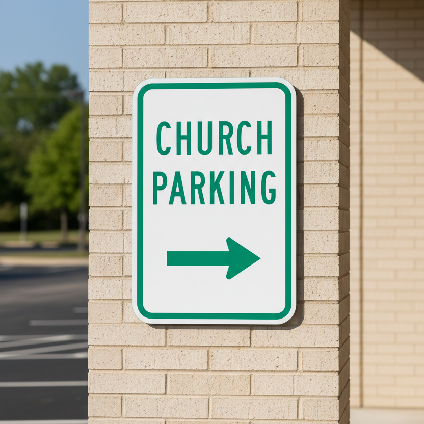The Church Parking (Right Arrow) is designed to provide exceptional performance and longevity in a variety of environments. this sign component ensures strength and weather resistance, making it ideal for both indoor and outdoor applications. With a size specification of 12X18, it fits standard installation requirements while offering versatility for different mounting setups. Whether you’re updating an existing setup or building new signage, this item ensures a reliable, high-quality finish that represents your brand or message clearly and professionally.