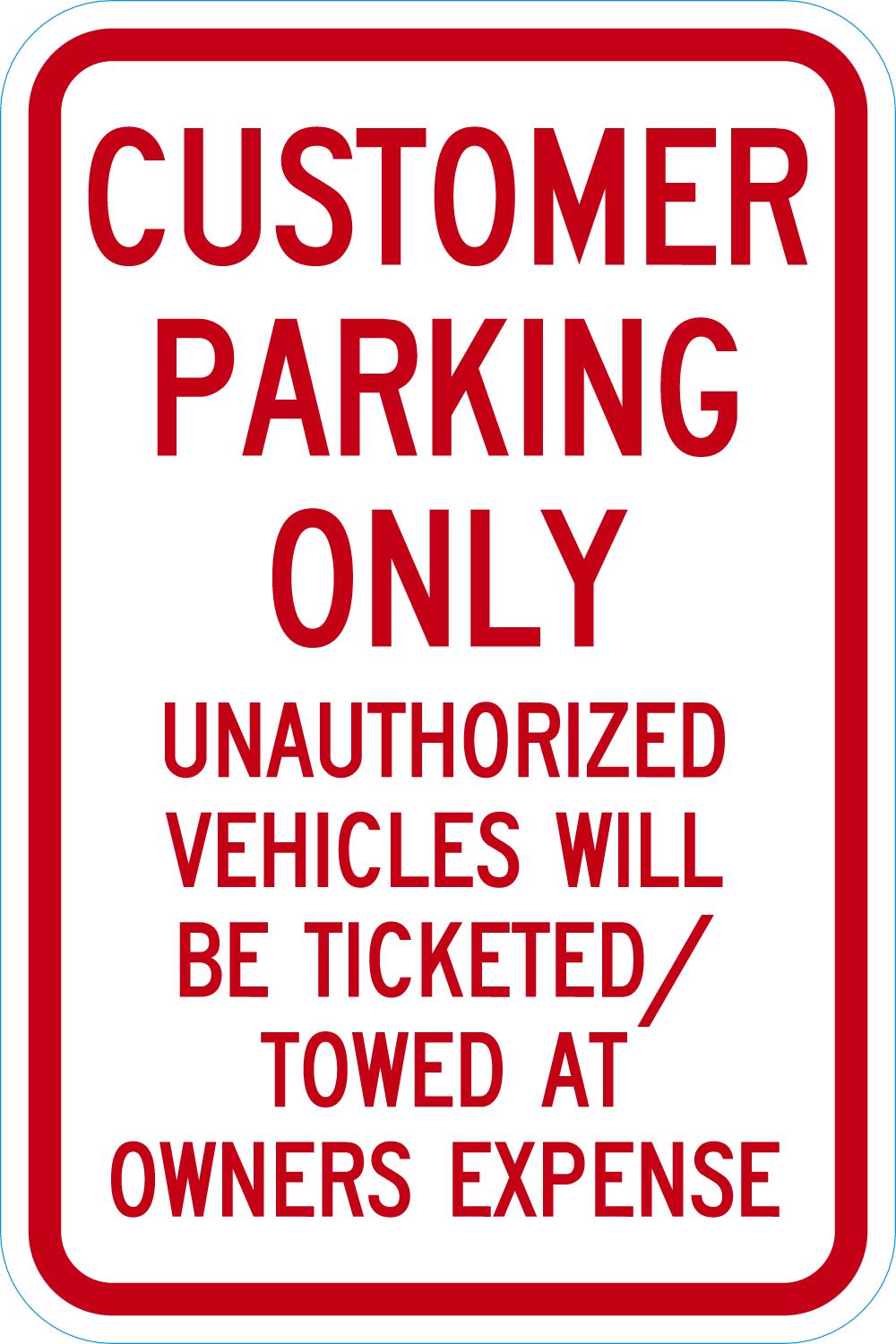 The Customer Parking Only Unauthorized Vehicles is designed to provide exceptional performance and longevity in a variety of environments. this sign component ensures strength and weather resistance, making it ideal for both indoor and outdoor applications. With a size specification of 12X18, it fits standard installation requirements while offering versatility for different mounting setups. Whether you’re updating an existing setup or building new signage, this item ensures a reliable, high-quality finish that represents your brand or message clearly and professionally.