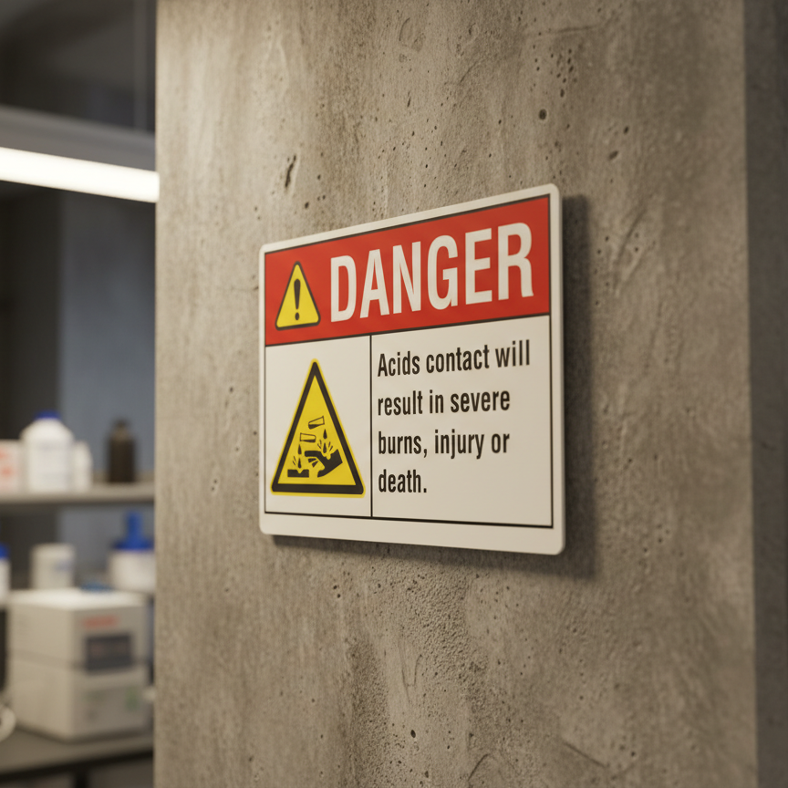The Danger Acids contact will result in severe burns is designed to provide exceptional performance and longevity in a variety of environments. this sign component ensures strength and weather resistance, making it ideal for both indoor and outdoor applications. With a size specification of 10X7, 14X10, 5X3.5, 7X5, it fits standard installation requirements while offering versatility for different mounting setups. Whether you’re updating an existing setup or building new signage, this item ensures a reliable, high-quality finish that represents your brand or message clearly and professionally.