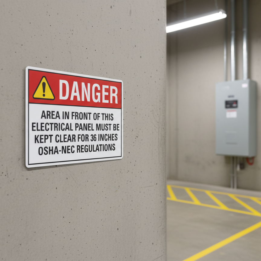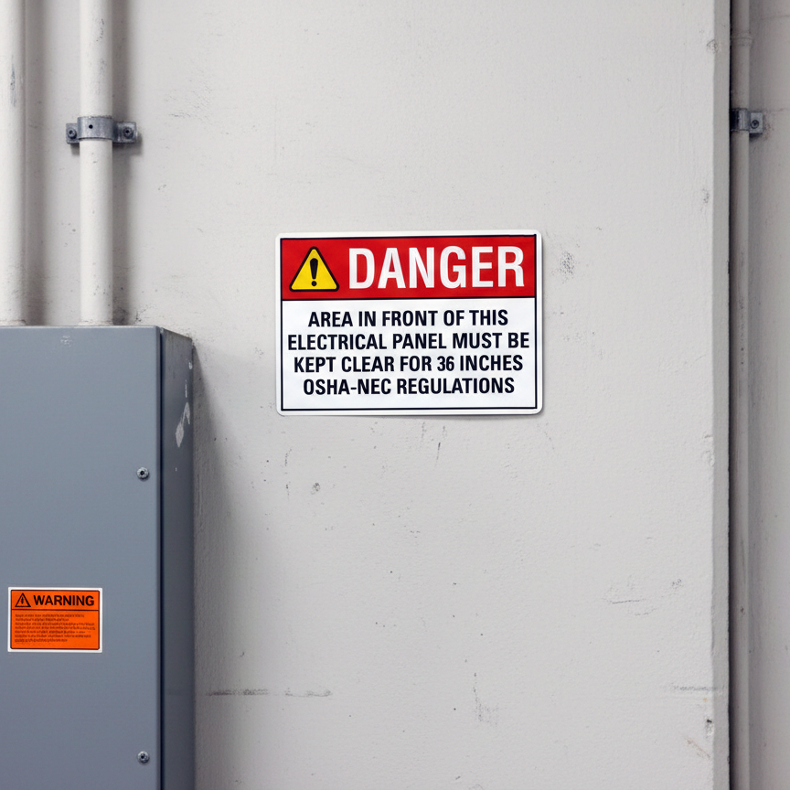 The Danger (Ansi) Area In Front Of This Electrical Panel Must Be is designed to provide exceptional performance and longevity in a variety of environments. this sign component ensures strength and weather resistance, making it ideal for both indoor and outdoor applications. With a size specification of 10X7, 14X10, 7X5, it fits standard installation requirements while offering versatility for different mounting setups. Whether you’re updating an existing setup or building new signage, this item ensures a reliable, high-quality finish that represents your brand or message clearly and professionally.