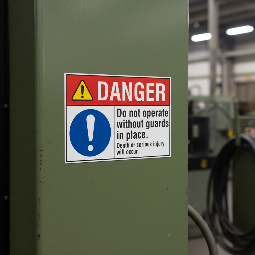 The Danger Do not operate without guards in place. Death or is designed to provide exceptional performance and longevity in a variety of environments. this sign component ensures strength and weather resistance, making it ideal for both indoor and outdoor applications. With a size specification of 10X7, 14X10, 5X3.5, 7X5, it fits standard installation requirements while offering versatility for different mounting setups. Whether you’re updating an existing setup or building new signage, this item ensures a reliable, high-quality finish that represents your brand or message clearly and professionally.