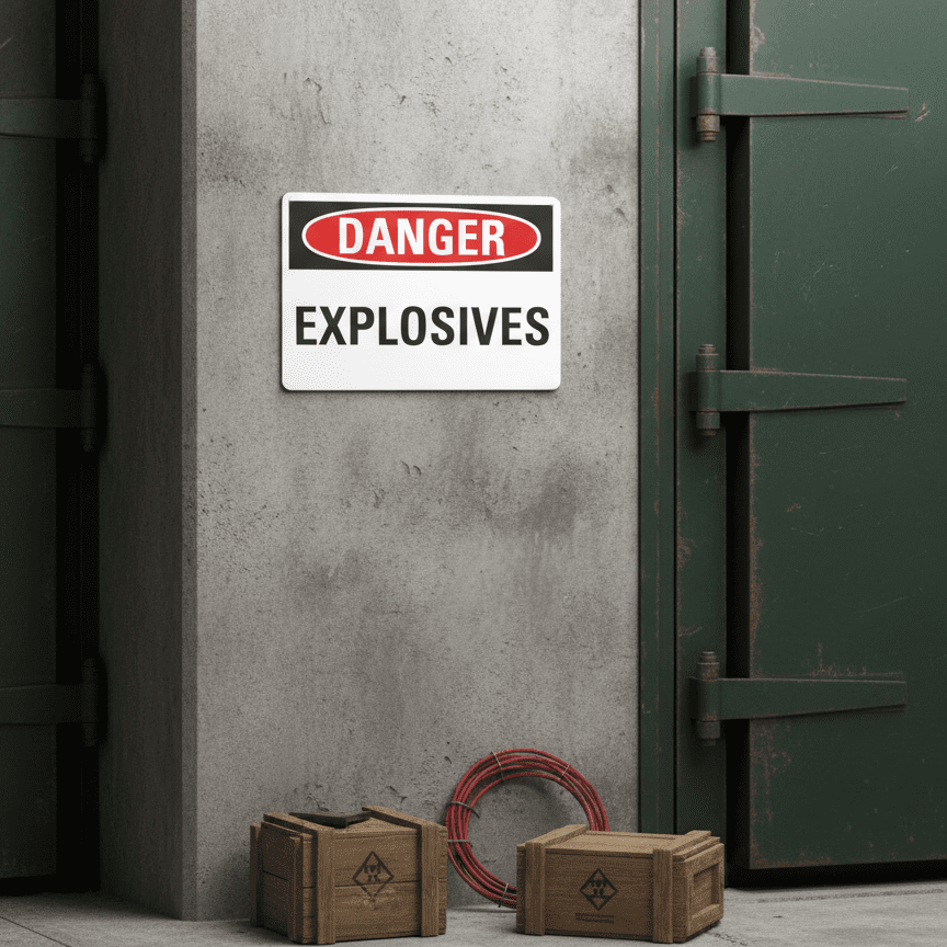 The Danger Explosives is designed to provide exceptional performance and longevity in a variety of environments. this sign component ensures strength and weather resistance, making it ideal for both indoor and outdoor applications. With a size specification of 10X7, 14X10, 7X5, it fits standard installation requirements while offering versatility for different mounting setups. Whether you’re updating an existing setup or building new signage, this item ensures a reliable, high-quality finish that represents your brand or message clearly and professionally.