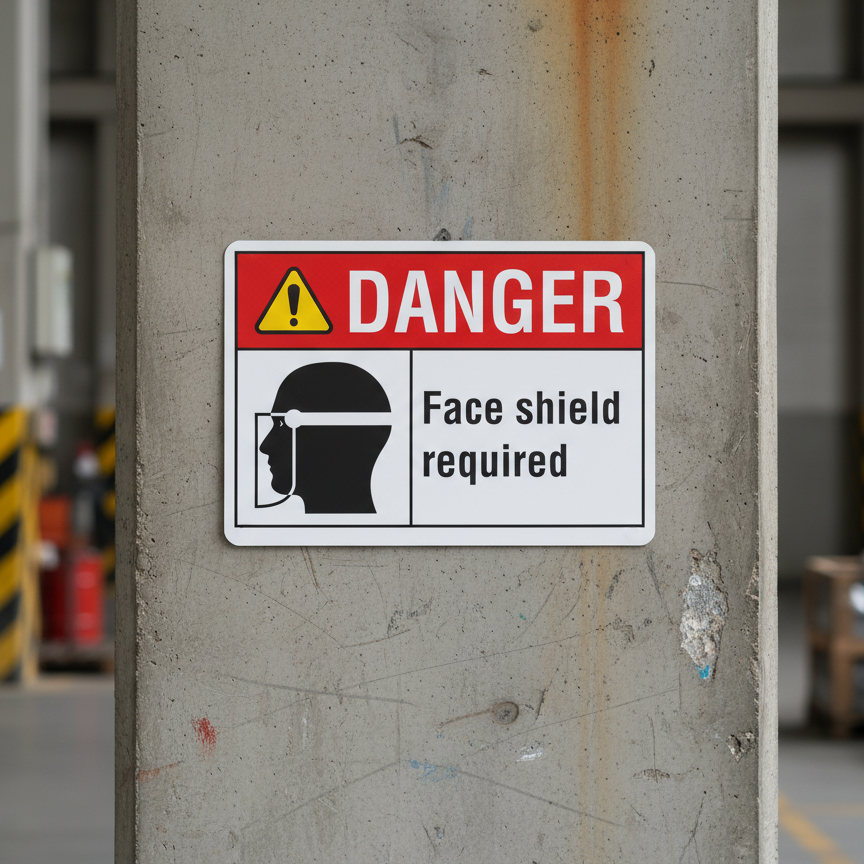 The Danger Face shield required is designed to provide exceptional performance and longevity in a variety of environments. this sign component ensures strength and weather resistance, making it ideal for both indoor and outdoor applications. With a size specification of 10X7, 14X10, 5X3.5, 7X5, it fits standard installation requirements while offering versatility for different mounting setups. Whether you’re updating an existing setup or building new signage, this item ensures a reliable, high-quality finish that represents your brand or message clearly and professionally.