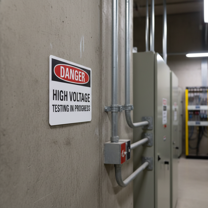 Danger High voltage testing in progress