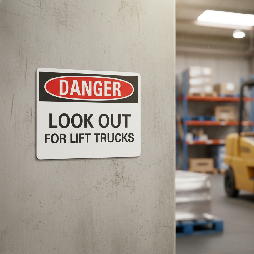 The Danger Look out for lift trucks is designed to provide exceptional performance and longevity in a variety of environments. this sign component ensures strength and weather resistance, making it ideal for both indoor and outdoor applications. With a size specification of 14X10, it fits standard installation requirements while offering versatility for different mounting setups. Whether you’re updating an existing setup or building new signage, this item ensures a reliable, high-quality finish that represents your brand or message clearly and professionally.