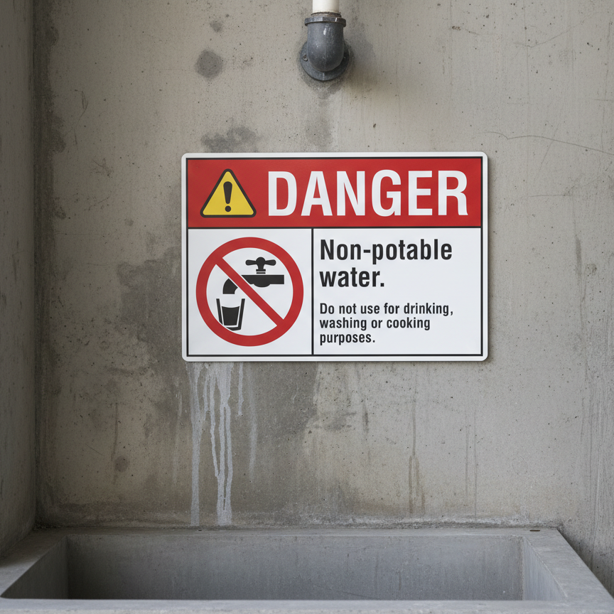 The Danger Non-potable water. Do not use for drinking is designed to provide exceptional performance and longevity in a variety of environments. this sign component ensures strength and weather resistance, making it ideal for both indoor and outdoor applications. With a size specification of 10X7, 14X10, 5X3.5, 7X5, it fits standard installation requirements while offering versatility for different mounting setups. Whether you’re updating an existing setup or building new signage, this item ensures a reliable, high-quality finish that represents your brand or message clearly and professionally.