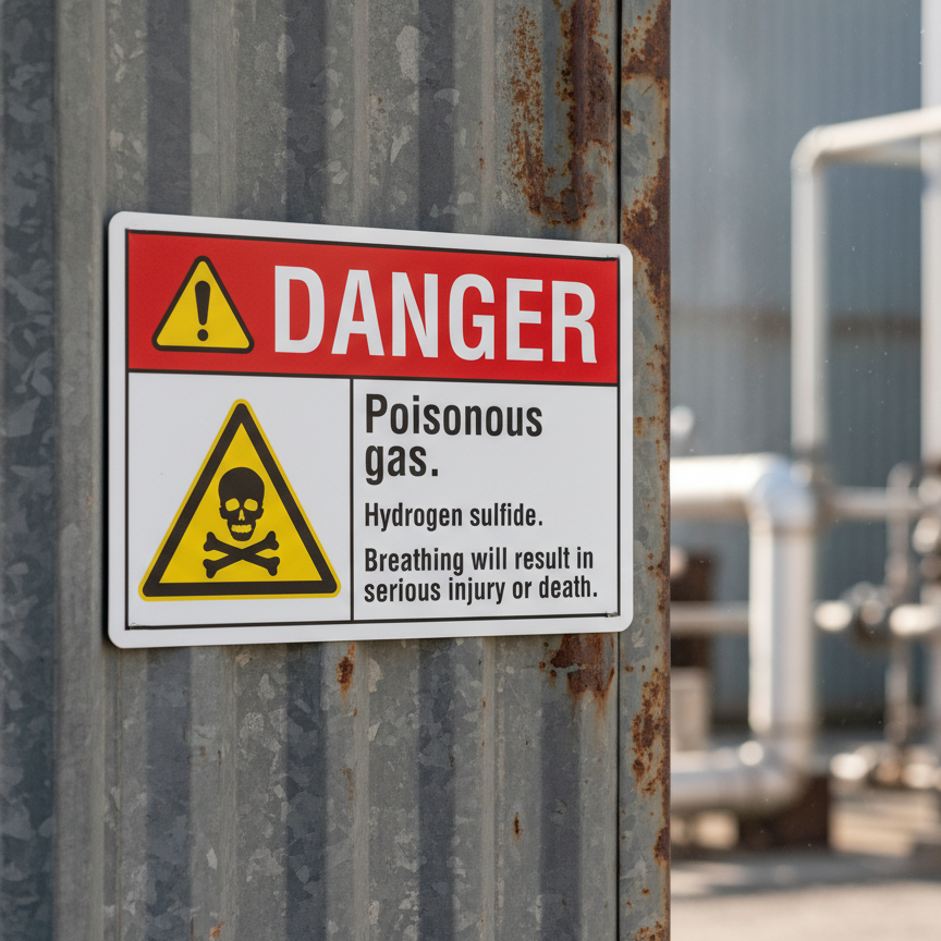 Danger Poisonous gas. Hydrogen sulfide. Breathing will