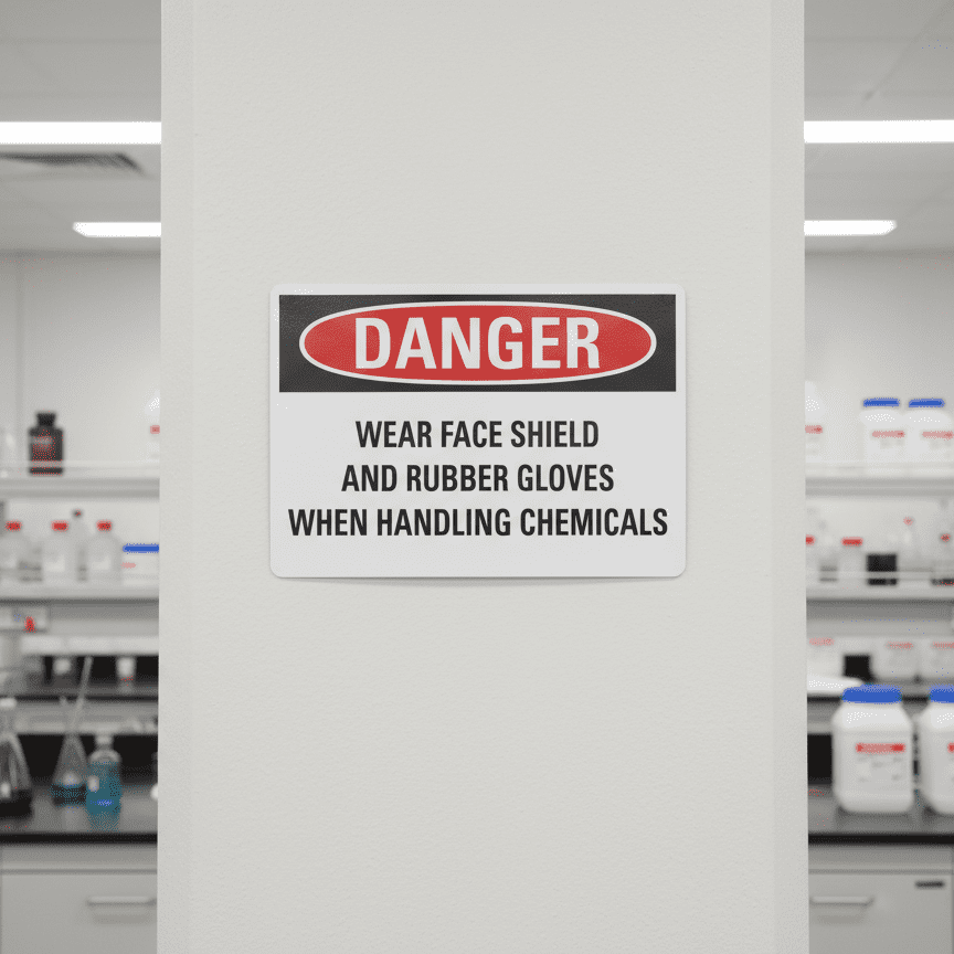The Danger Wear face shield and rubber gloves when handling is designed to provide exceptional performance and longevity in a variety of environments. this sign component ensures strength and weather resistance, making it ideal for both indoor and outdoor applications. With a size specification of 10X7, 14X10, 5X3.5, 7X5, it fits standard installation requirements while offering versatility for different mounting setups. Whether you’re updating an existing setup or building new signage, this item ensures a reliable, high-quality finish that represents your brand or message clearly and professionally.