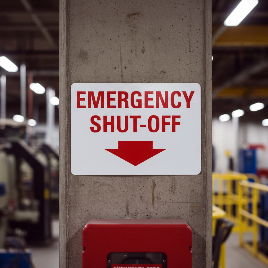The Emergency Shut-Off (Down Arrow) is designed to provide exceptional performance and longevity in a variety of environments. this sign component ensures strength and weather resistance, making it ideal for both indoor and outdoor applications. With a size specification of 10X7, 14X10, 7X5, it fits standard installation requirements while offering versatility for different mounting setups. Whether you’re updating an existing setup or building new signage, this item ensures a reliable, high-quality finish that represents your brand or message clearly and professionally.
